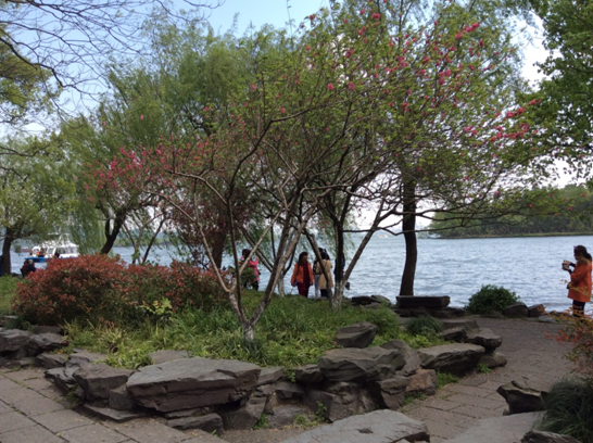 上午十点,我们乘船游西湖,泛舟风韵万千“淡妆浓抹总相宜”的西子湖,远观三潭印月、阮墩环碧、湖心亭、孤山烟雨,漫步桃红柳绿的苏堤,品味苏东坡“间株杨柳间株桃”之诗境。
