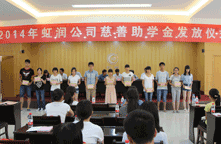 2014年8月22日,虹润公司一年一度的“圆梦助学行动”捐资助学仪式在虹润科技园办公大楼四楼礼堂隆重举行。顺昌县委副书记易才卿、顺昌县关工委主任黄春娣、顺昌县政协副主席黄为雄、顺昌县文体局局长李元生、团县委书记吴诗源、顺昌县工会副主席兰荣妹、虹润公司董事长林善平以及相关部门领导出席了仪式。