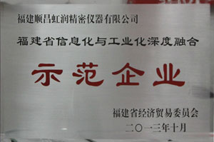 大力推进两化融合是企业升级转型的关键,其重点在于提高制造过程信息化水平,培育发展新兴产业,同时激发企业的内在动力。虹润公司积极响应党的十七大“大力推进信息化与工业化融合”的号召,始终把信息化建设作为公司战略发展规划的重要内容,全方位推进两化工作,取得了可喜的成绩,得到了省市信息化部门的肯定。近日,福建省经贸委发布了闽经贸产业〔2013〕818号文件,虹润公司被确认为首批福建省信息化和工业化深度融合示范企业。本次荣誉的获得,有助于发挥虹润作为两化融合示范企业的带动作用,树立行业标杆,推动工业转型升级,带领仪器仪表行业向产业链高端跃进。