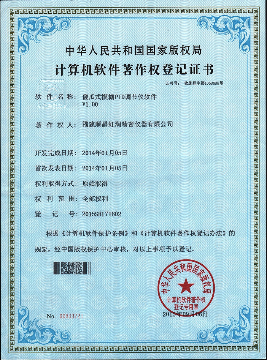 | 人工智能模糊PID调节器 软件登记证书 | 傻瓜式模糊PID调节仪 软件登记证书 |