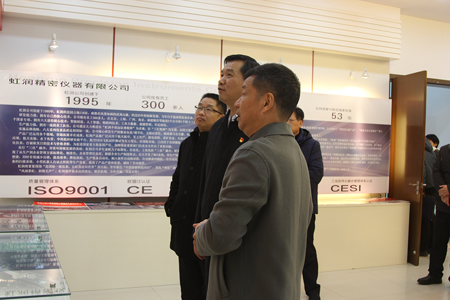 2020年12月15日,南平市袁超洪市长一行在顺昌县委书记邱建斌等人陪同下莅临虹润公司考察调研。虹润公司董事长林善平热情接待。袁市长一行在林善平董事长陪同下参观了虹润公司文化展厅和产品科技展厅,林善平董事长向袁市长详细汇报了公司的创业历程和有关转型升级、技术研发、智能制造、市场销售等具体情况。袁市长认真听取了汇报,当他听到虹润公司在疫情过后整体营商环境低迷的情况下,着力在电商营销领域发力,整体销售不降反增,同比增长20%,同时在已有六大系列仪表基础上又新推水质分析仪、电能质量分析仪、温湿度记录仪、可编程继电器等四大系列产品时,高兴的说虹润公司还要进一步创新,开拓更多的仪器仪表科技领域,进一步扩大市场。