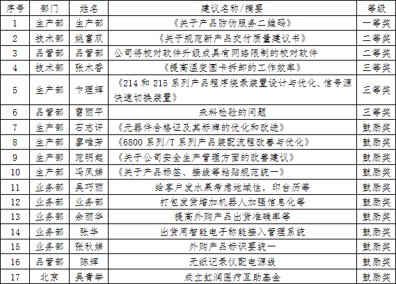 近日,虹润公司召开了合理化建议评选活动,活动得到广大员工的积极响应,踊跃参与,经公司评审小组综合评定,共评出了1项一等奖、2项二等奖、3项三等奖和11项鼓励奖。长期以来,公司将合理化建议制度列为常态化机制运行,把合理化建议活动作为激励广大职工参与管理、发挥创造才能、实现自我价值的重要途径,激励员工以“虹润不怕远征难”的企业精神开拓进取,积极投身节能挖潜、技术改造,通过职工在实际工作中针对可改进事项提出好点子、金点子,不断创新工作方式方法,优化生产技术工艺,达到提质及降本增效的目标。