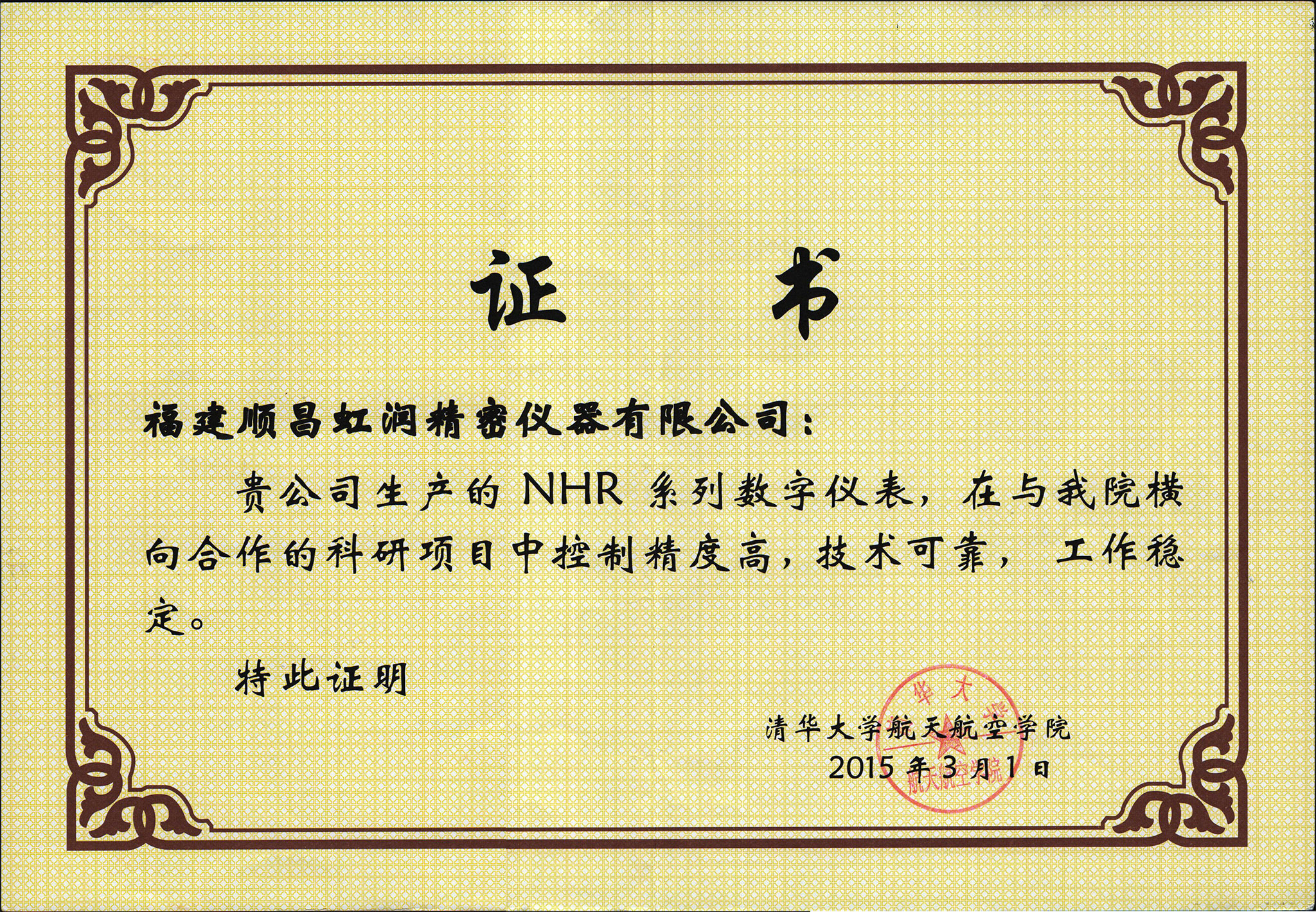 近日,由虹润公司生产的自动化显示控制仪表产品,成功应用于清华大学航空航天学院横向合作科研项目,因控制精准,抗干扰性强,运行稳定,受到了清华大学航空航天学院科研项目组的广泛好评,并向虹润公司颁发了证书。