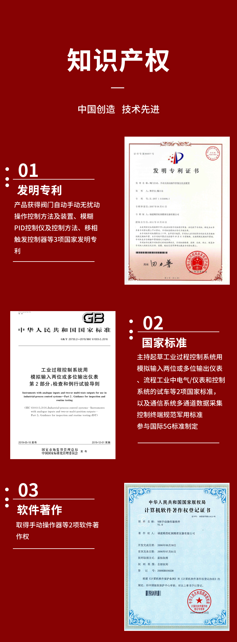 虹润公司是专业生产智能手操器的国家专精特新“小巨人”企业,生产的手动操作器,具有手自动无扰切换,直接调节阀门,多种输出类型,外接强制手动功能,高抗干扰等特点。产品获得阀门自动手动无扰动操作控制方法及装置、模糊PID控制仪及控制方法、移相触发控制器等3项国家标准,主持起草工业过程控制系统用模拟输入两位或多位输出仪表、流程工业中电气/仪表和控制系统的试车等2项国家标准,以及通信系统多通道数据采集控制终端规范军用标准,参与国际5G标准制定,取得手动操作器等3项相关软件著作权。产品广泛应用于电力、石化、冶金、化工、造纸、食品、轻工、制药、热处理、水处理、机械配套等各种工业现场。