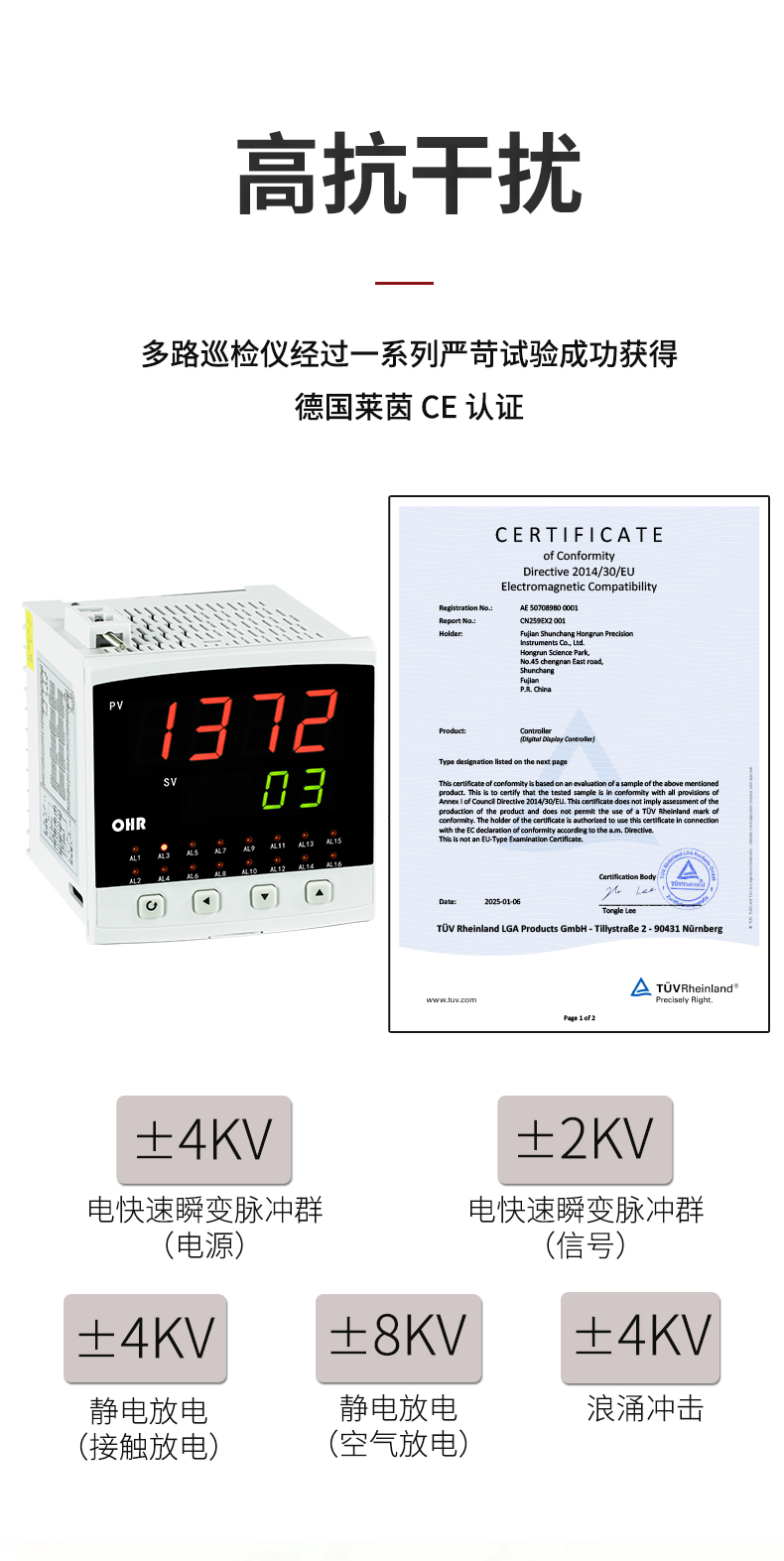 虹润公司是专业生产多路温度巡检仪的国家专精特新“小巨人”企业,生产的多回路测量显示控制仪,具有8路/16路测量通道,全切换信号输入,多种输出类型,高抗干扰,RS485/RS232通讯等特点。产品获得巡回检测显示方法及装置、仪表壳体等2项国家发明专利,主持起草工业过程控制系统用模拟输入两位或多位输出仪表、物联网智能温度仪表通用技术条件等2项国家标准,以及通信系统多通道数据采集控制终端规范军用标准,参与国际5G标准制定,取得多回路测量显示控制仪等3项相关软件著作权。产品广泛应用于电力、石化、冶金、制药、水处理、机械配套等各种工业现场。