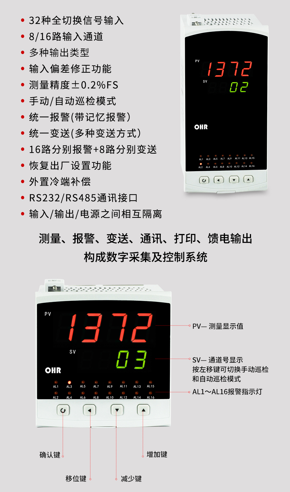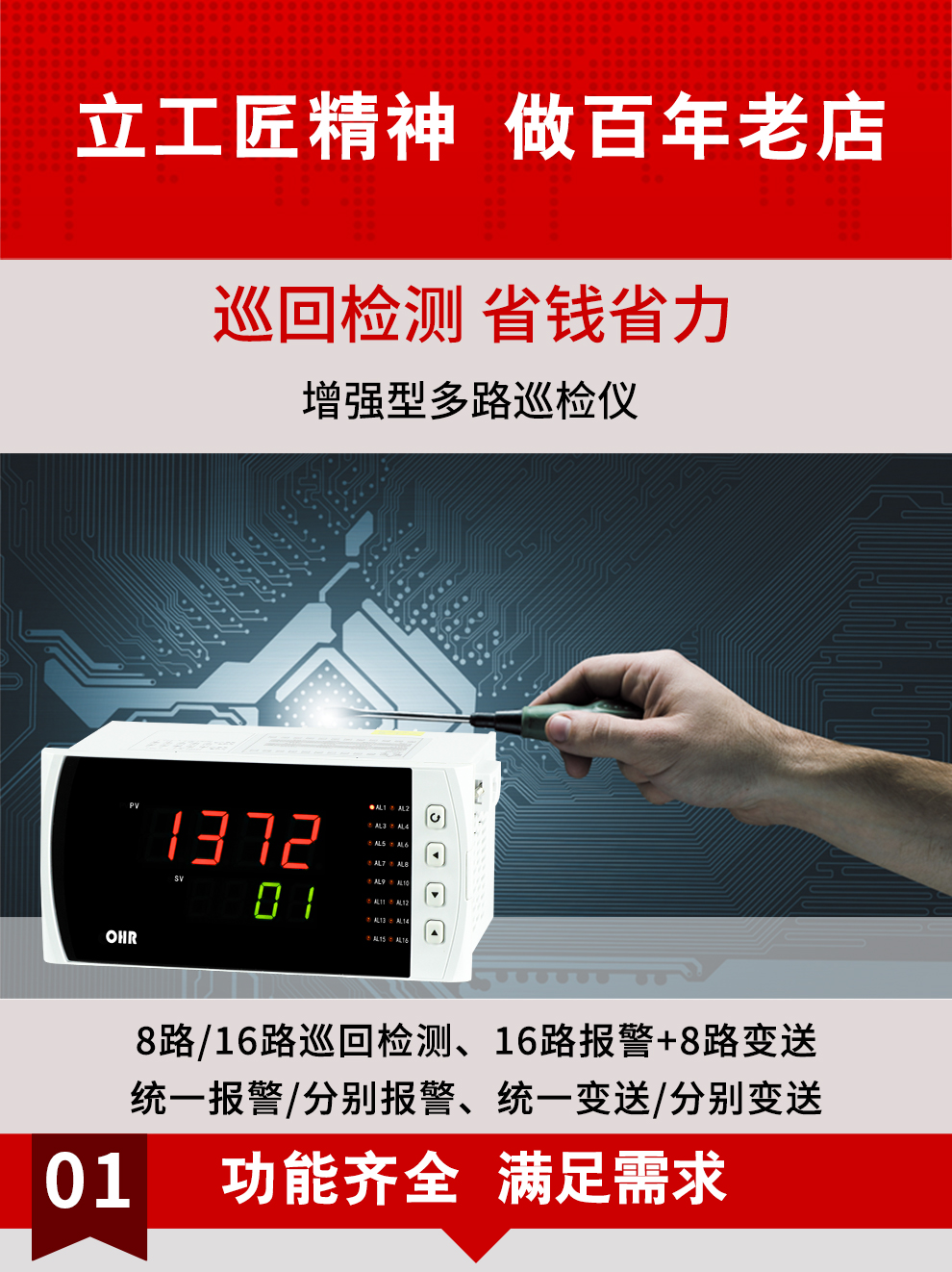 虹润公司是专业生产多路温度巡检仪的国家专精特新“小巨人”企业,生产的增强型多路巡检仪,具有8路/16路测量通道,全切换信号输入,多种输出类型,高抗干扰,RS485/RS232通讯等特点。产品获得巡回检测显示方法及装置、仪表壳体等2项国家发明专利,主持起草工业过程控制系统用模拟输入两位或多位输出仪表、物联网智能温度仪表通用技术条件等2项国家标准,以及通信系统多通道数据采集控制终端规范军用标准,参与国际5G标准制定,取得多回路测量显示控制仪等3项相关软件著作权。产品广泛应用于电力、石化、冶金、制药、水处理、机械配套等各种工业现场。