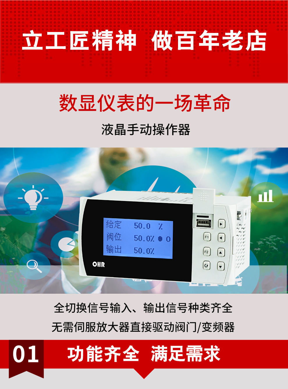 虹润公司是专业生产智能手操器的国家专精特新“小巨人”企业,生产的液晶手动操作器,具有全切换信号输入,通道之间相互隔离,手自动无扰动切换配上位机管理软件等特点。产品获得阀门自动手动无扰动操作控制方法及装置、模糊PID控制仪及控制方法、移相触发控制器等3项国家标准,主持起草工业过程控制系统用模拟输入两位或多位输出仪表、流程工业中电气/仪表和控制系统的试车等2项国家标准,以及通信系统多通道数据采集控制终端规范军用标准,参与国际5G标准制定,取得手动操作器等3项相关软件著作权。产品广泛应用于电力、石化、冶金、化工、造纸、食品、轻工、制药、热处理、水处理、机械配套等各种工业现场。