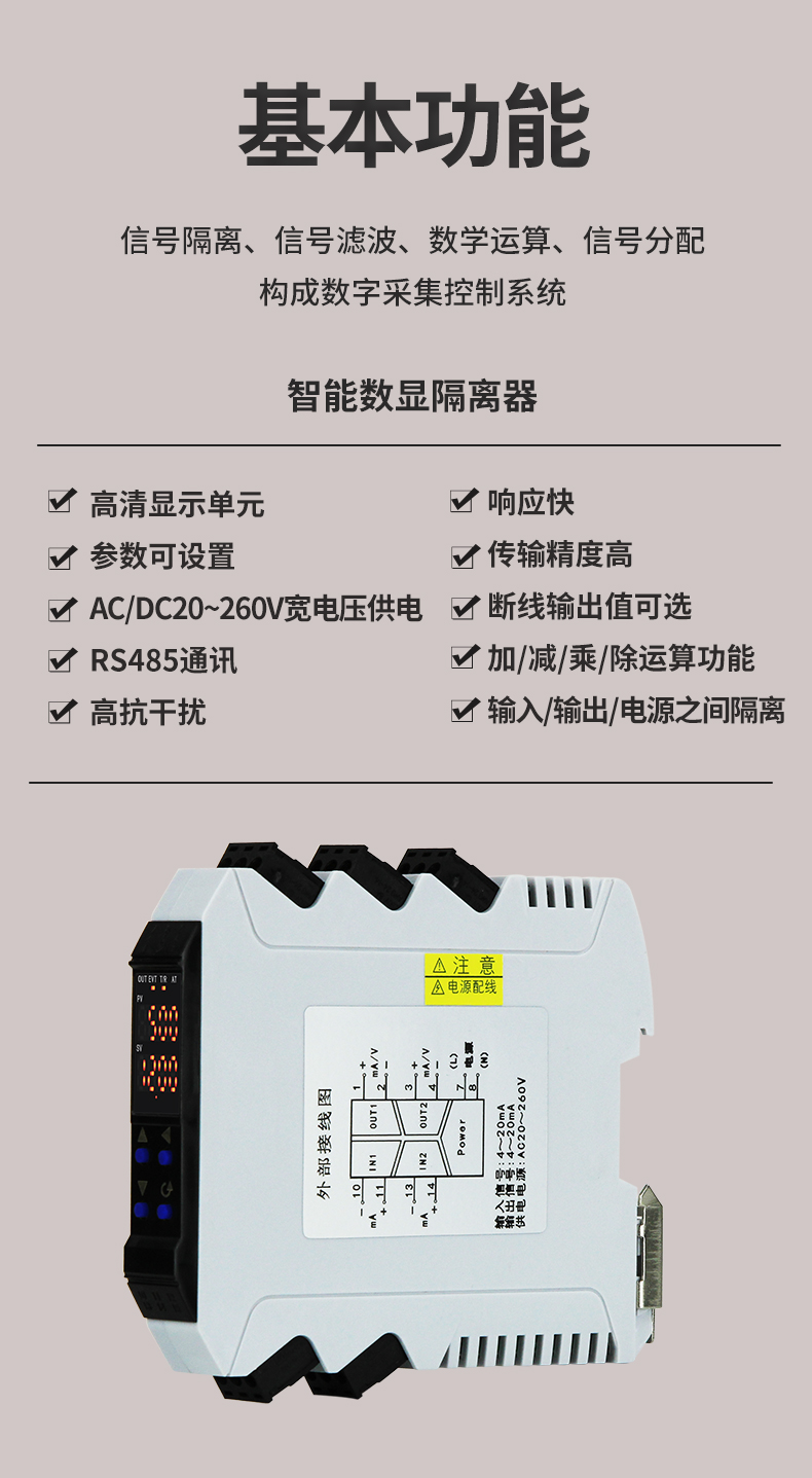 虹润公司是专业生产隔离器的国家专精特新“小巨人”企业。生产的导轨式智能隔离器 ,具有高清显示单元,参数可设置,宽电源供电,响应快,带RS485通讯等特点。产品获得信号隔离器、一种二端子模块、无源信号隔离器等3项国家发明专利,主持起草现场设备工具(FDT)接口规范、工业过程测量和控制系统用隔离式安全栅、工业过程测量和控制系统用配电器等3项国家标准,以及通信系统多通道数据采集控制终端规范军用标准,参与国际5G标准制定,取得智能隔离器等2项相关软件著作权。产品广泛应用于电力、石化,冶金、制药、水处理、机械配套等各种工业现场。