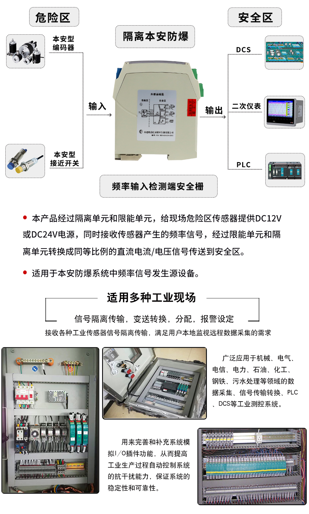 虹润公司是专业生产隔离器的国家专精特新“小巨人”企业。生产的隔离式安全栅涵盖信号频率输入、电压输入、电流输入、热电阻输入、热电偶输入、开关量输入等多种产品类型。产品获得具备减震抗干扰能力的温度变送器、信号隔离器、一种二端子模块、无源信号隔离器等4项国家发明专利,主持起草物联网智能温度仪表、现场设备工具(FDT)接口规范、工业过程测量和控制系统用温度变送器等3项国家标准,以及通信系统多通道数据采集控制终端规范军用标准。参与国际5G标准制定,取得智能隔离式安全栅等4项相关软件著作权。产品广泛应用于石油、电力、化工,冶金、智能制造、污水处理等诸多行业。