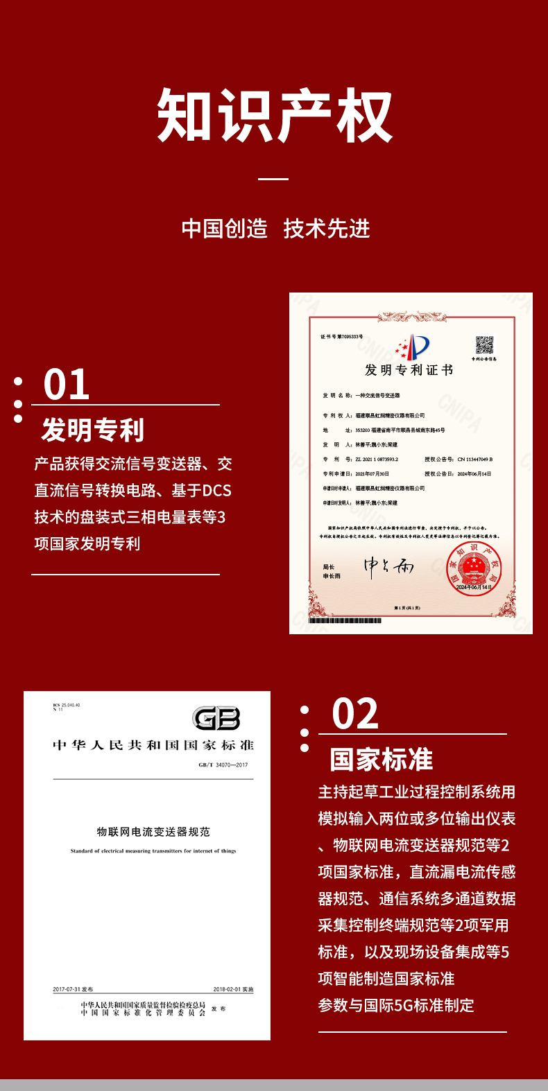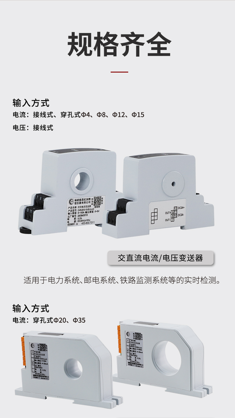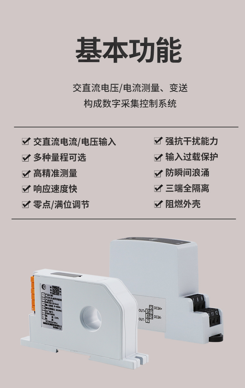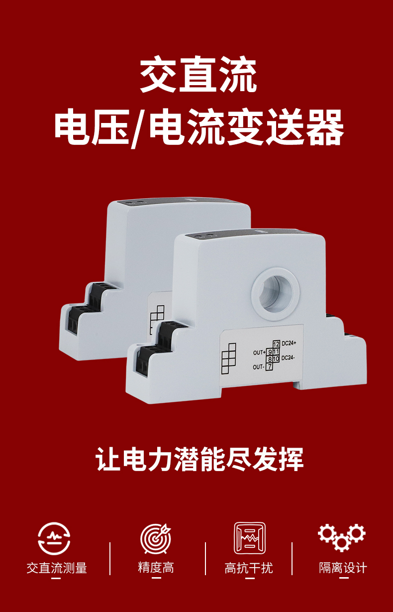 虹润公司是专业生产电流传感器的国家专精特新“小巨人”企业。生产的交流电压/电流变送器,具有交流电压/电流输入、高精准测量、响应速度快、高抗干扰、全隔离设计等特点。产品获得一种交流信号变送器、交直流信号转换电路、基于DCS技术的盘装式三相电量表等3项国家发明专利,主持起草工业过程控制系统用模拟输入两位或多位输出仪表国家标准,直流漏电流传感器规范、通信系统多通道数据采集控制终端规范等2项军用标准,以及现场设备集成等5项智能制造国家标准,参与国际5G标准制定。产品广泛应用于工业自动化、电力、新能源、科研实验基础设施等需要电力参数监测的领域。