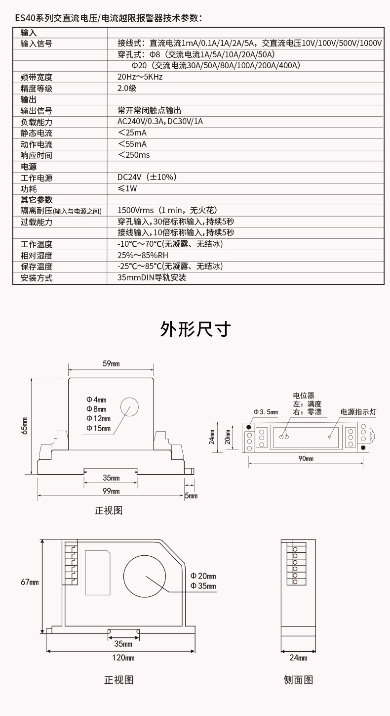 OHR-ES10系列单相交流电压/电流变送器