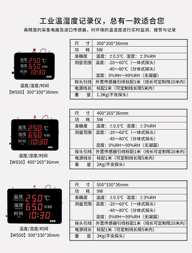 OHR-WS50/51/52/53系列大屏幕温湿度记录仪
