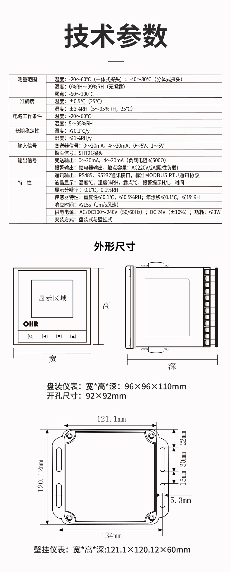 OHR-WS10C系列温湿度控制仪