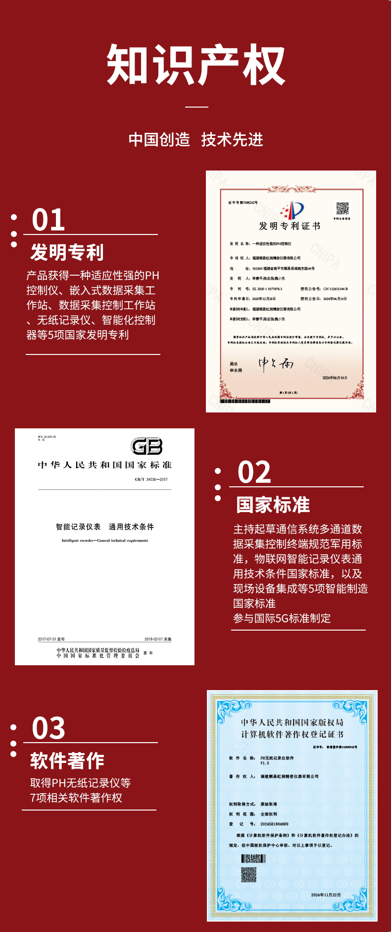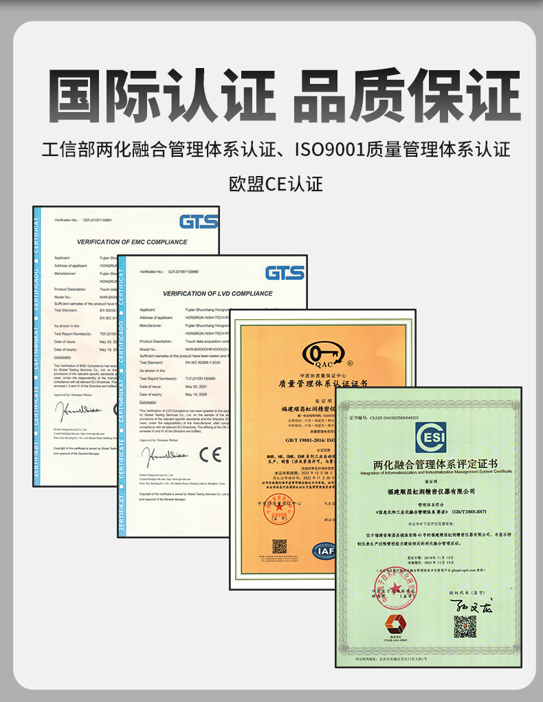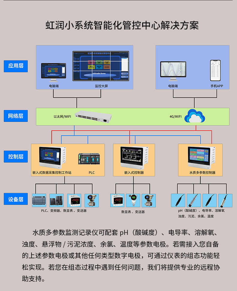 虹润公司是专业生产水质分析仪的国家专精特新“小巨人”企业。生产的水质多参数监测记录仪,具有多参数采集同屏显示,数据记录与转存,支持WiFi或4G实现数据云方案,内置与外配组态软件等特点。产品获得一种适应性强PH控制仪、嵌入式数据采集工作站、数据采集控制工作站、无纸记录仪、智能化控制器等5项国家发明专利;主持起草通信系统多通道数据采集控制终端规范军用标准,物联网智能记录仪表通用技术条件国家标准,以及现场设备集成等5项智能制造国家标准,参与国际5G标准制定;取得PH无纸记录仪等7项相关软件著作权。产品广泛应用于实验室、水处理、环境监测、食品、制药、农业、工业流程控制等诸多领域。