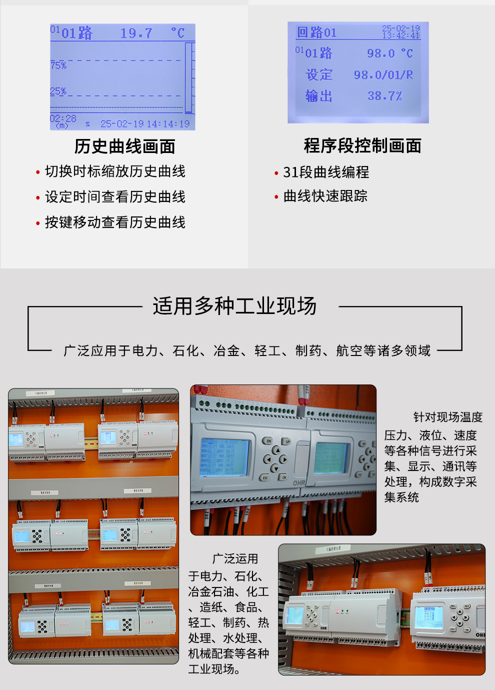 虹润公司是专业生产温控器的国家专精特新“小巨人”企业。生产的温度控制器,具有4路或8路PID控制,真正人工智能算式,无需人工整定参数,控制精度达士0.1°C,数据记录与转存等特点。产品获得智能化控制器、人工智能调节器及调节方法、模糊PID控制仪及控制方法、一种平板无纸记录仪、巡回检测显示方法及装置等5项国家发明专利,主持起草物联网智能记录仪表、物联网智能温度仪表、工业过程测量和控制系统用智能调节器等3项国家标准,参与国际5G标准制定,取得液晶温控器仪表等3项相关软件著作权。产品广泛应用于电石化、工业炉、试验设备、注塑机械、包装机械等需要对现场温度进行监测控制的行业。